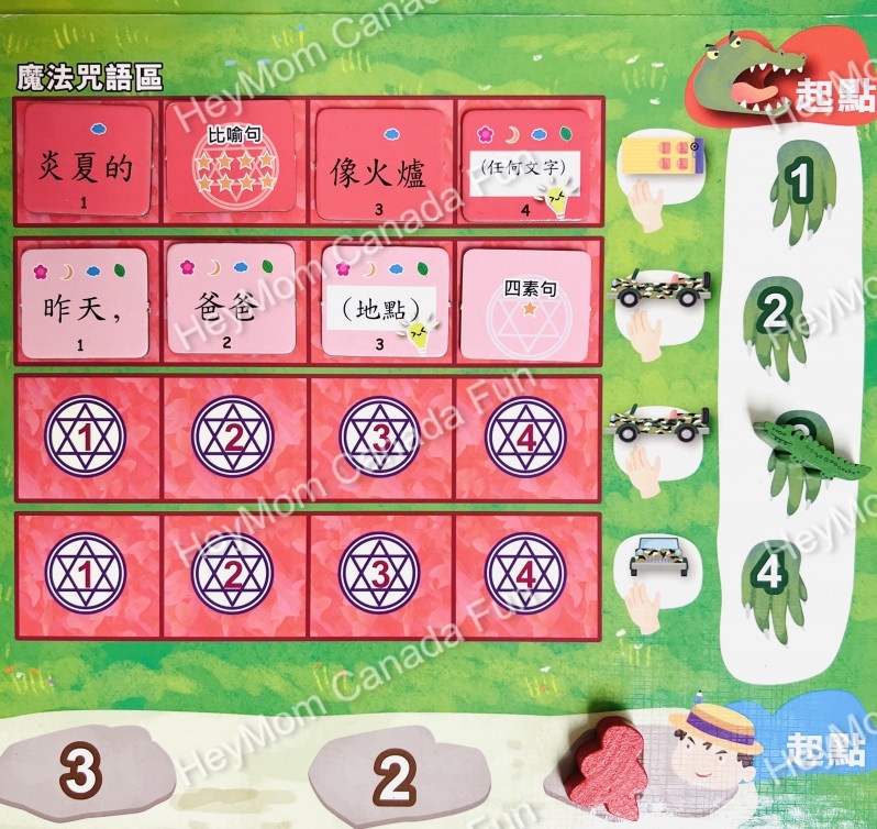 🎲遊戲任務:隊員需要同心協力組合魔法咒語(中文句子),以奪取魔幻寶石💎和逃生車🛻,逃離鱷魚的魔爪🐊。其間須完成神祕卡上驚險刺激的任務,祝您好運😎!緊記王牌👑留到生死關頭才用啊!😱